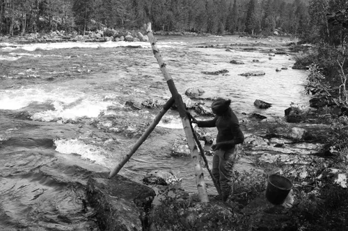 Installasjon ved Atnaelva, i Drømmedalen (Nordre Finnstad), Stor-Elvdal kommune, av Vigdis Haugtrø og Anna Widén, 2021.